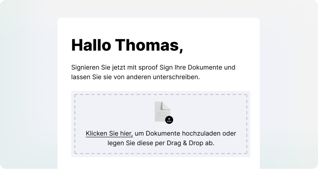 Laden Sie ein Dokument kostenlos mit Ihrem PC oder Ihrem Smartphone hoch. Ihre Dokumente werden automatisch in das PDF-Format konvertiert und es öffnet sich der Editor von sproof sign.
