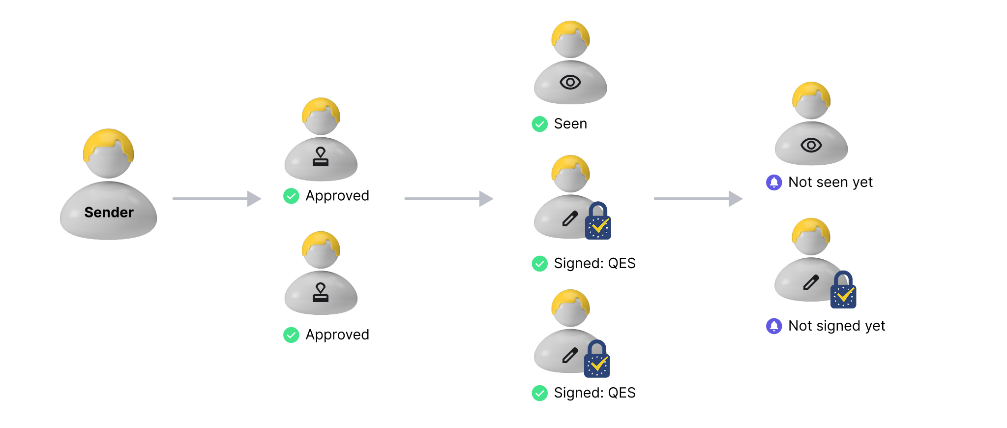 Assign roles (viewers, signers, approvers), set the order, and choose the appropriate signature standard (QES, AES, SES).